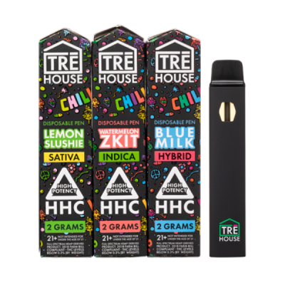 Discover the TRE House High Potency HHC Disposable Pen 2G, available in three tantalizing flavors/strains: Blue Milk (Hybrid), Lemon Slushie (Sativa), and Watermelon Zkit (Indica). Users rave about the intense experiences these pens offer, including a calm state of mind, elevated mood, body and head buzz, and even mild visual sensations. It’s important to note that Tre House HHC disposable pens are exceptionally potent, so it’s advised to start with caution and gradually increase usage as desired. Just one puff is recommended initially, allowing you to gauge its effects. Each Tre House HHC Pen contains 1900mg of HHC, providing approximately 800 puffs, and can be easily recharged via a standard USB Type-C port. Keep track of your HHC levels with the convenient window on the side of the device.TRE House High Potency HHC Disposable Pen 2G Features and Specifications:• 1900mg Pure HHC • Contains no other cannabinoids• Approximately 800 Puffs• Ceramic Coil for great flavor through it’s lifespan • 2 Gram Rechargeable / Disposable • Warning: May cause psychotropic effects