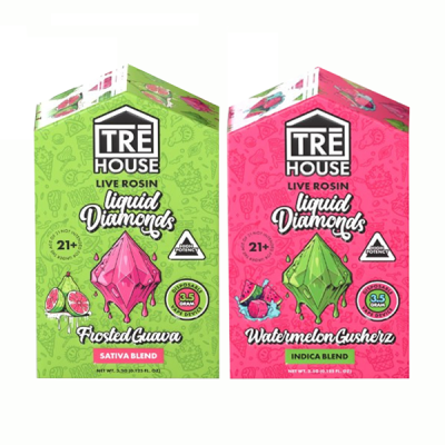 Experience the pinnacle of cannabis innovation with TRĒ House Live Rosin Liquid Diamonds Disposable 3.5G. This premium product features a potent blend of live rosin Delta 8, THCP, Delta-9, Delta-10, and HHC. Enjoy the entourage effect, where these cannabinoids work synergistically to enhance benefits such as relaxation, euphoria, and stress relief. The live rosin extraction method preserves the plant’s full spectrum of cannabinoids and terpenes, delivering an authentic and robust flavor profile. Perfect for those seeking a convenient, powerful, and flavorful experience, this disposable is your go-to for a premium cannabis journey. TRĒ House Live Rosin Liquid Diamonds Disposable 3.5G Features and Specifications: • Capacity: 3.5G (3500mg)• Cannabinoid: Live Rosin Delta 8, THCP, Delta 9, Delta 10, HHC• Concentrate: Terpenes• < 0.3% Delta-9 THC• No Fillers• 3rd Party Lab Tested